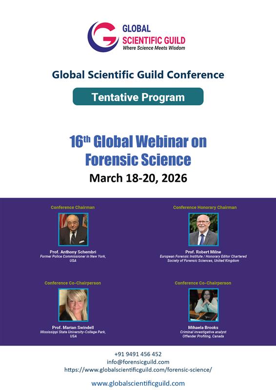 16th Global Webinar on Forensic Science, which is going to be held during March 18-20, 2026 as a live online event.