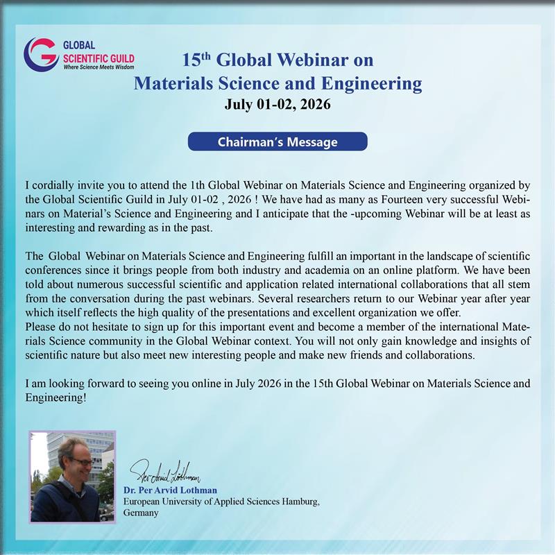 Global Scientific Guild thanks all our speakers and participants for making the 14th Global Webinar on Materials Science and Engineering grand success!