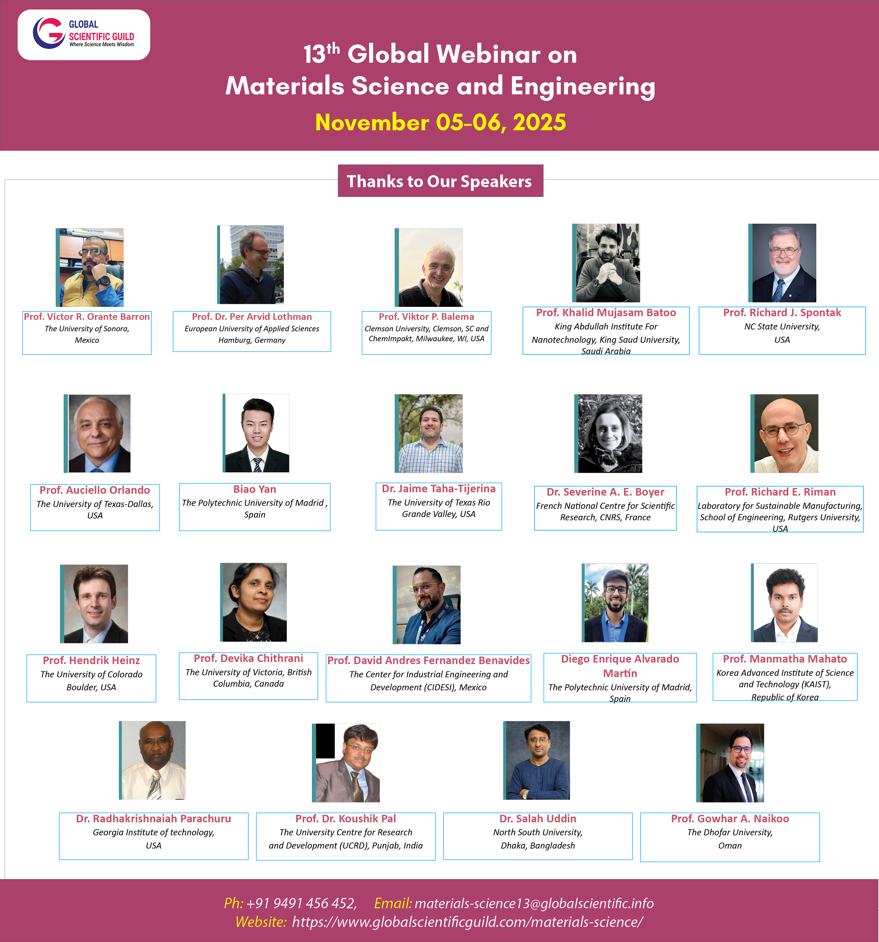 Global Scientific Guild thanks all our speakers and participants for making the 13th Global Webinar on Materials Science and Engineering grand success!