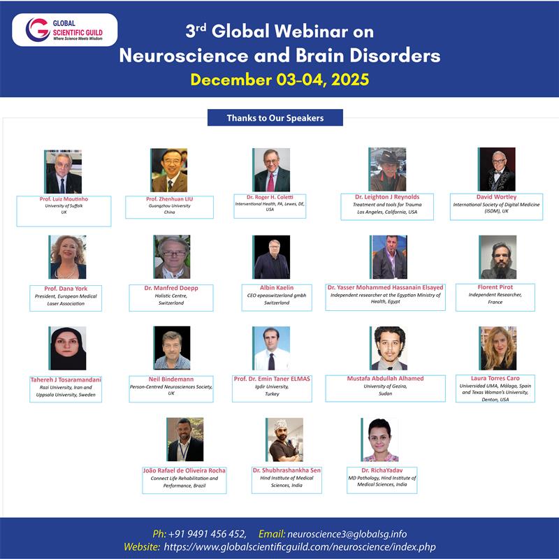 After the grand success of 3rd Global Conference, Global Scientific Guild is delighted to announce 4th Global Webinar on Neuroscience and Brain Disorders which will be held during April 08-09, 2026 as a live online event.