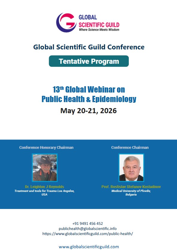 After the grand success of Twelve Global Conferences, Global Scientific Guild is delighted to announce the 13th Global Webinar on Public Health and Epidemiology which will be held during May 20-21, 2026 as a live online event.